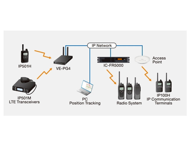 De optionele externe communicator RC-FS10 creëert op een pc een op IP gebaseerde virtuele radio en kan via de VE-PG4 communiceren met landmobiele zendontvangers, LTE-zendontvangers en IP-communicatieterminals.