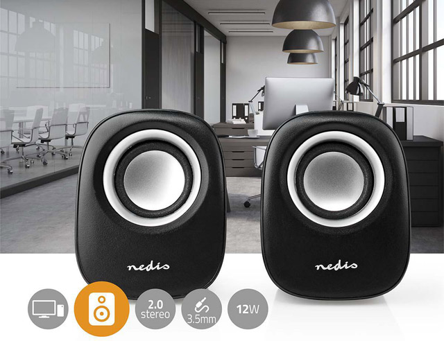 Draagbaar miniluidsprekersysteem om via de USB- en miniplugconnector aan te sluiten op pc's, laptops of tablets en overal van muziek te genieten. De luidsprekers leveren een rijk basgeluid en ondersteunen 3D geluidstechnologie via een 2.0-kanaal. Het compacte formaat maakt het apparaat ideaal voor onderweg.